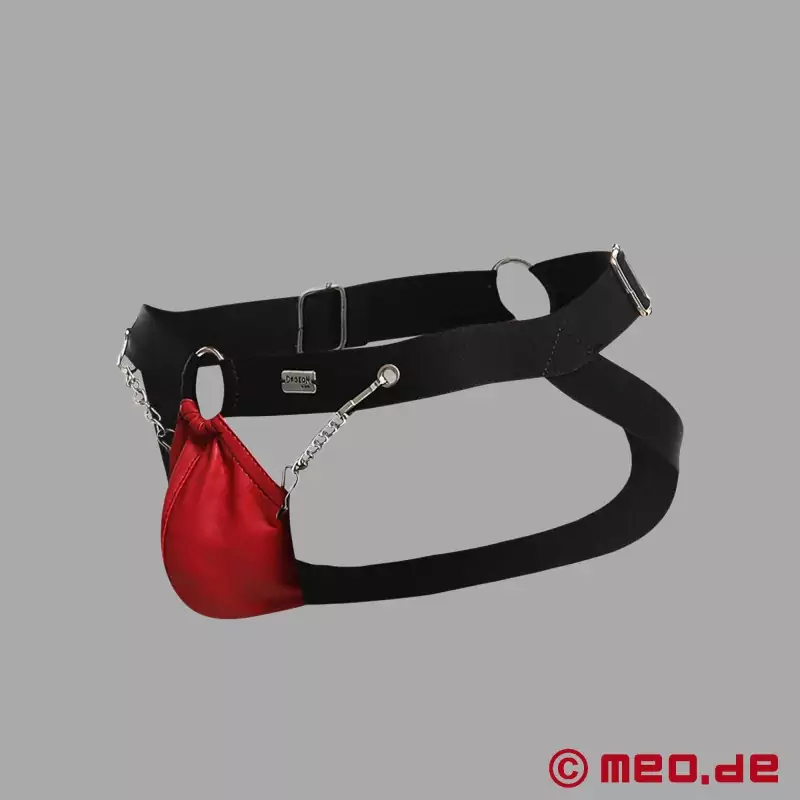 Sert. Seksi. %100 fetiş. 1000 % vay canına! Bu BDSM jockstrap açıkça sıradan bir iç çamaşırı değil, baskınlığı veya teslimiyeti sonuna kadar yaşamak için bir carte blanche. Parlak kırmızının (elbette tüm fisting hayranlarının rengi) yanı sıra açıkta kalan alt kısım ve öndeki zincir detayları, sizi kışkırtan, tahrik eden ve gözden kaçırılmaması garanti edilen bir görünüm yaratır. Jockstrap'ın arkası çıplak kıçınızdan başka hiçbir şeyden oluşmaz. Açıkça erişilebilir ve rimming, seks veya bir sonraki adım ne olursa olsun hazır.