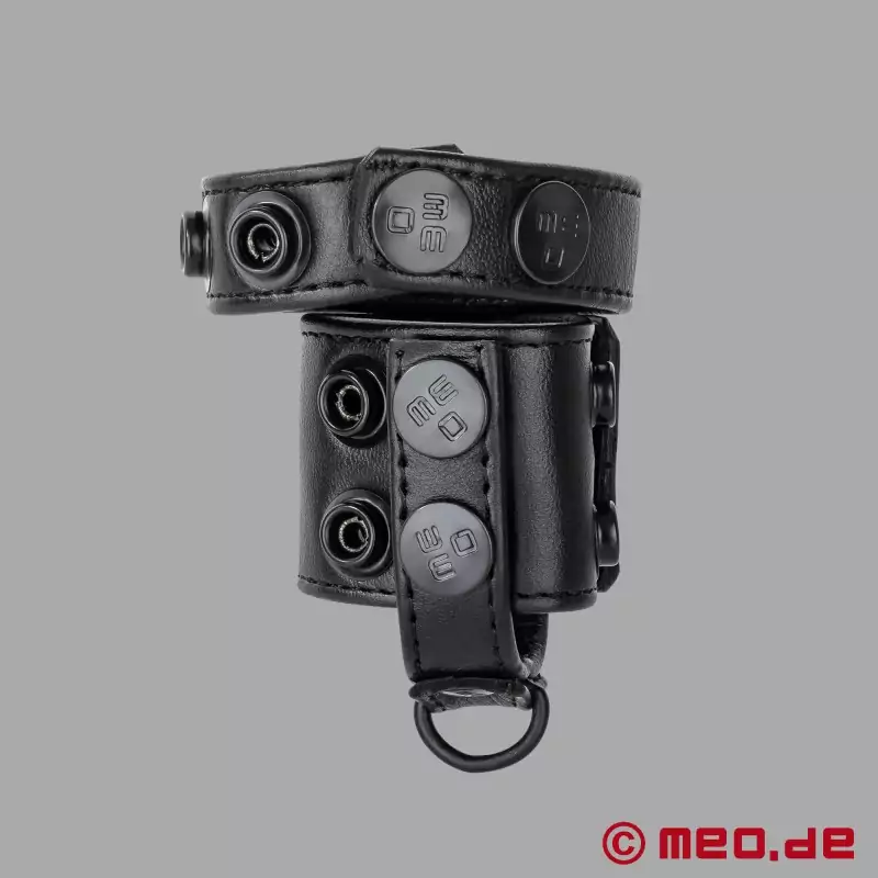 This harness is made of high quality leather that is both comfortable and rigid. You can adjust the tension of the device by using the snaps. As you can see from the image the ball strap separates the testicles and isolates them while the ball stretcher cuff provides the stretch. When worn, especially under clothes, the sensation is amazing.